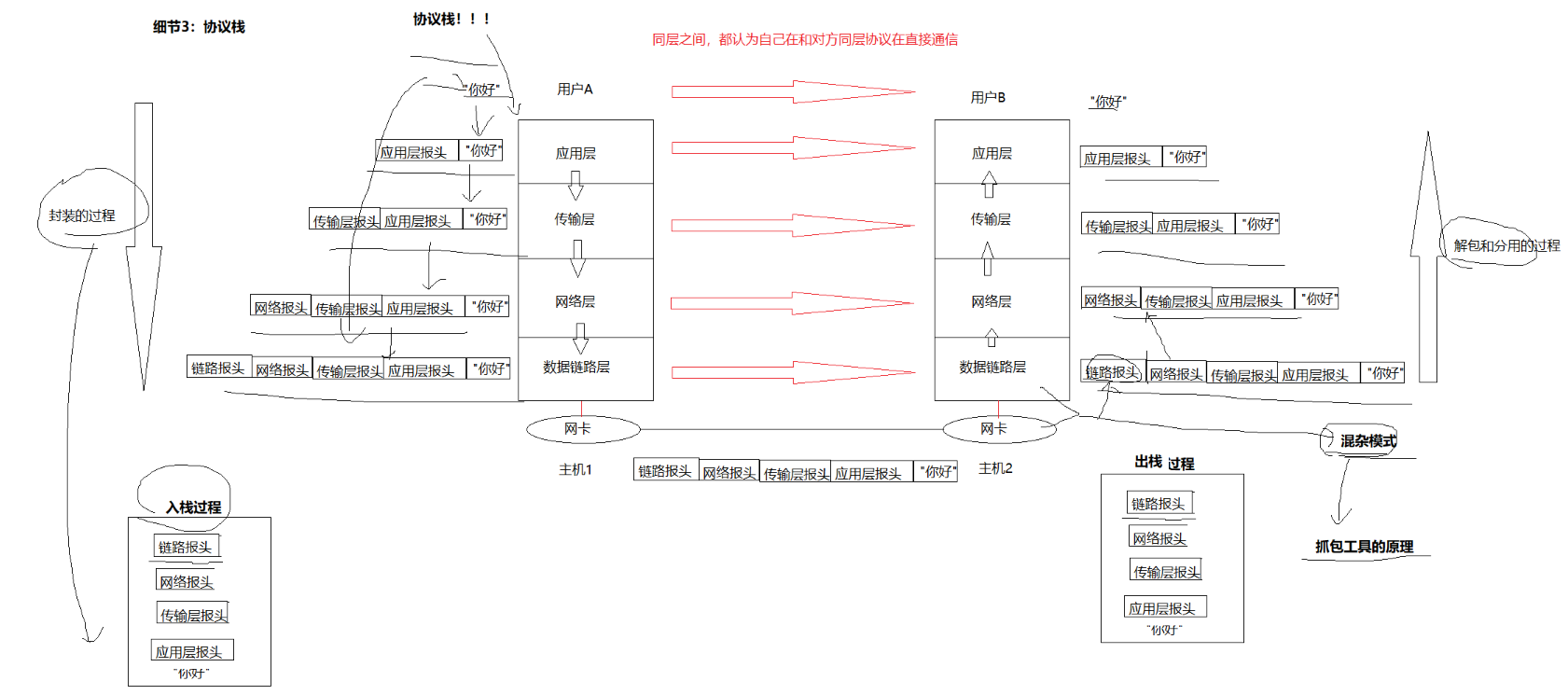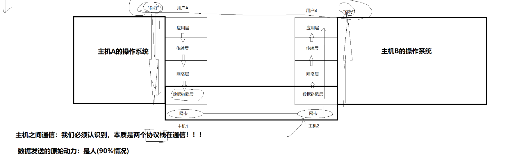 3、两台主机在通信:其实是两个协议栈在通信
