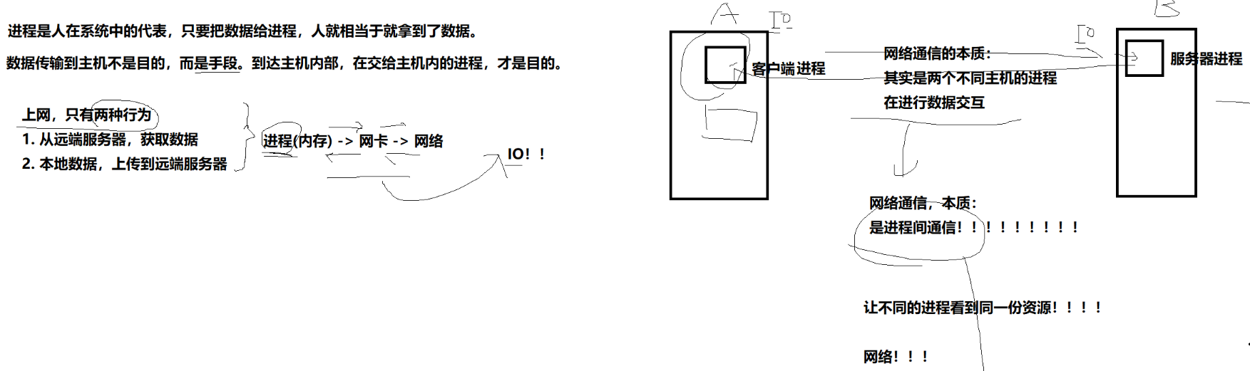 1、主机间通信的本质:进程间通信,网络就是同一份资源