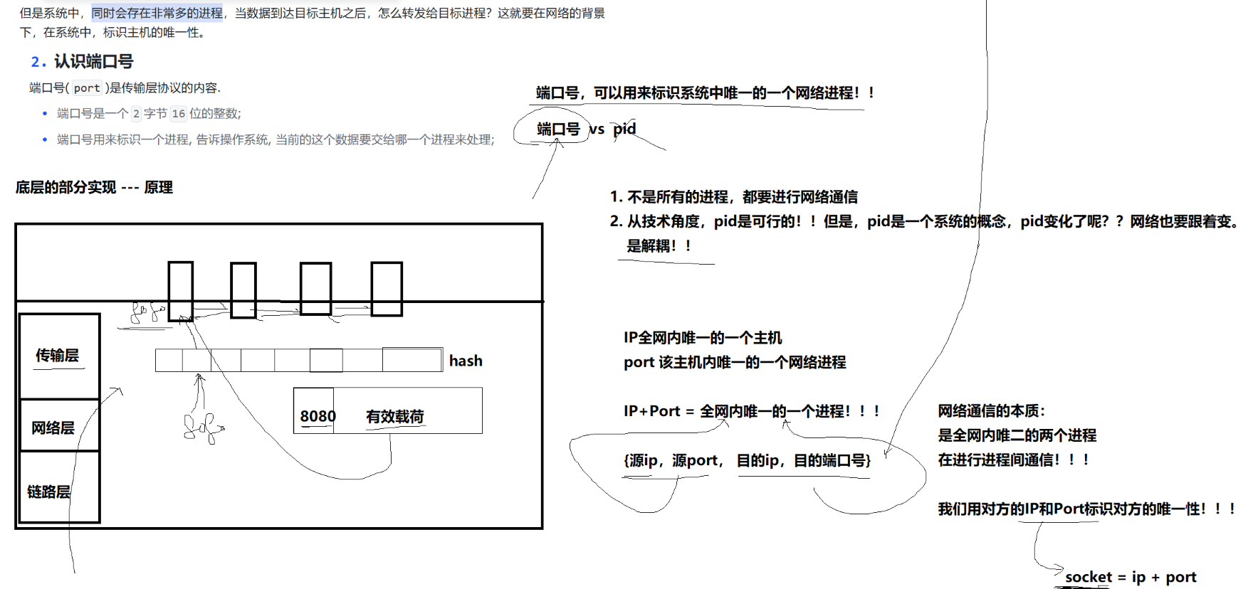 主机双方互相通信,互相唯一标识对方的方式就是对方的ip和进程的端口号(port)