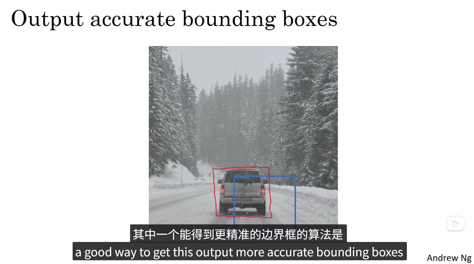 滑动窗口的卷积实现,这个算法的效率很高,但仍然存在问题。不能输出最精准的边界框,下面,我们看看如何得到更精准的边界框。