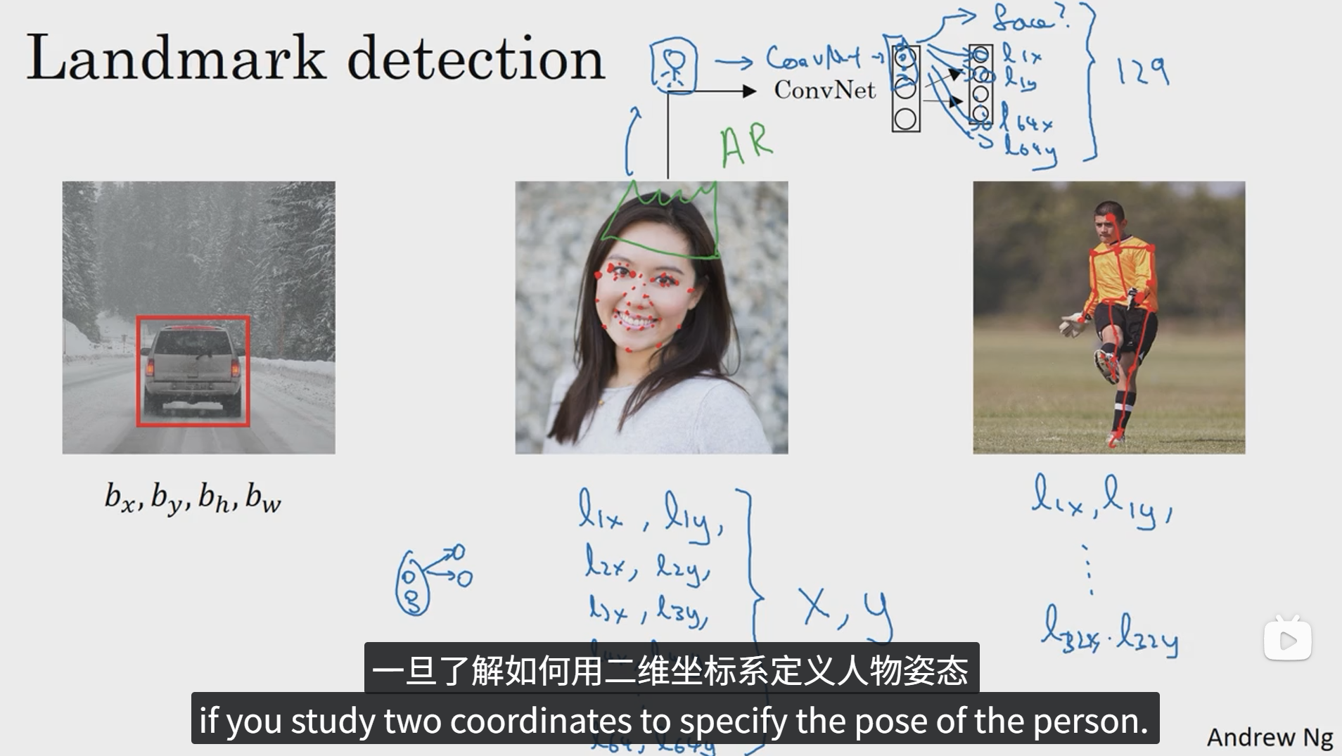 神经网络可以通过输出图片上的特征点的 (x, y) 坐标来实现对目标特征的识别,下面我们一起看几个例子。