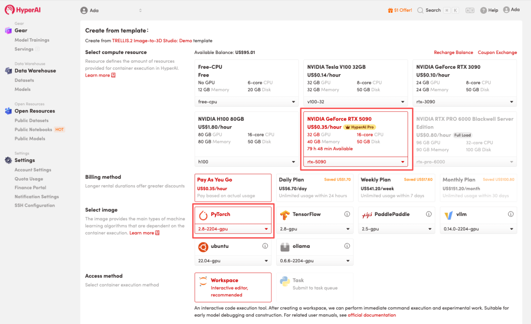 HyperAI 为新用户准备了注册福利,**仅需 1,即可获得 20 小时 RTX 5090 算力(原价 7),**资源永久有效。