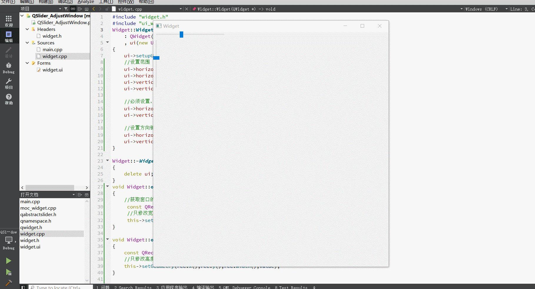 4.使用QSlider调整窗口大小