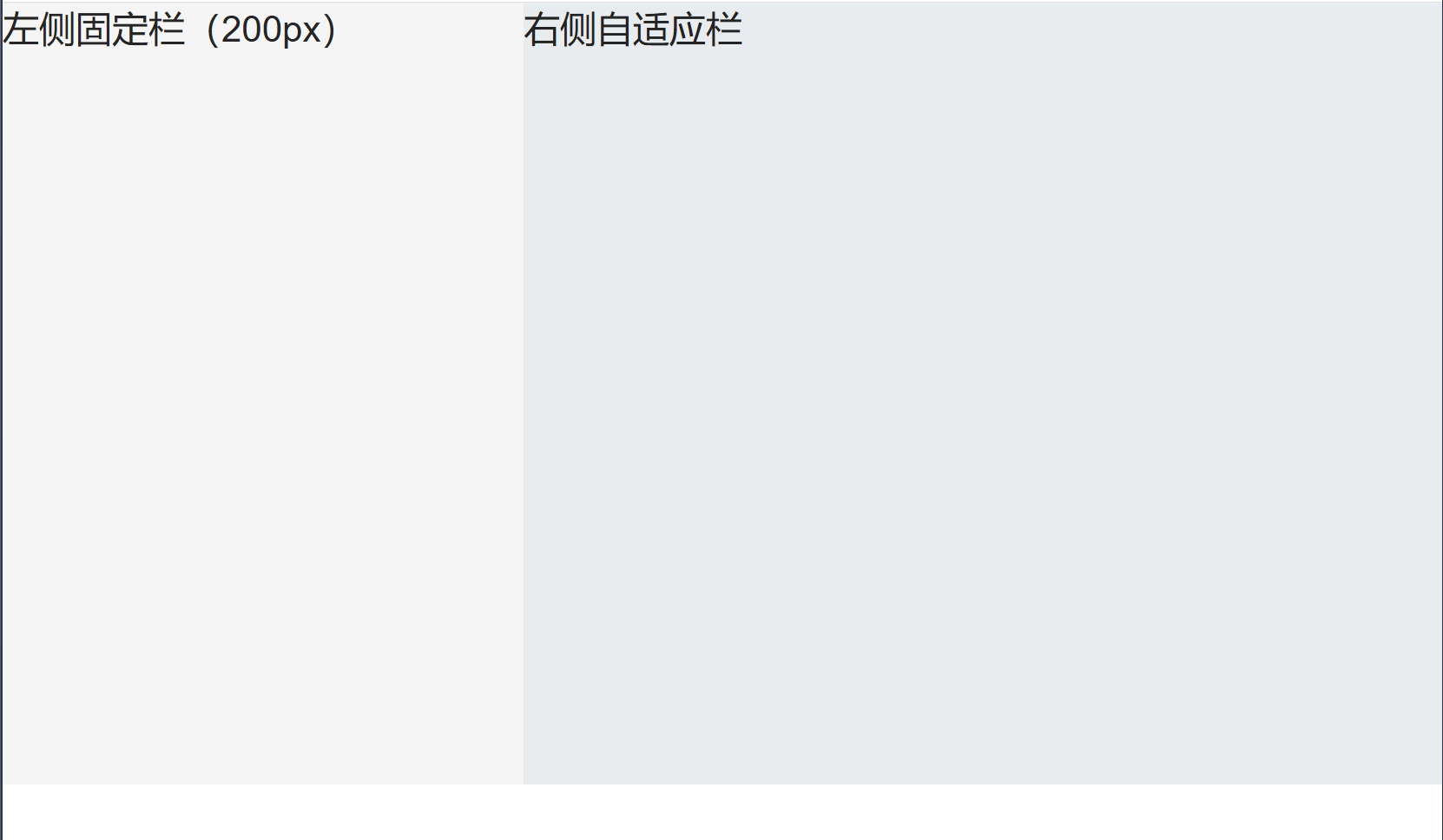 效果:左侧固定 200px 宽,右侧自适应剩余宽度,且与左侧无重叠。