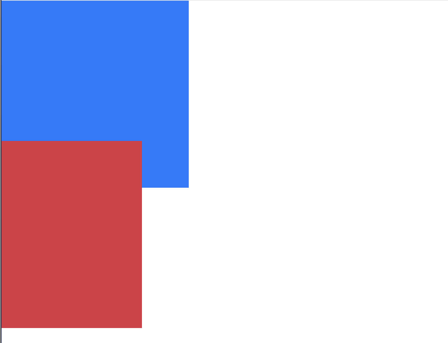 效果:红色盒子向上、向左各重叠蓝色盒子 50px,形成叠加效果。