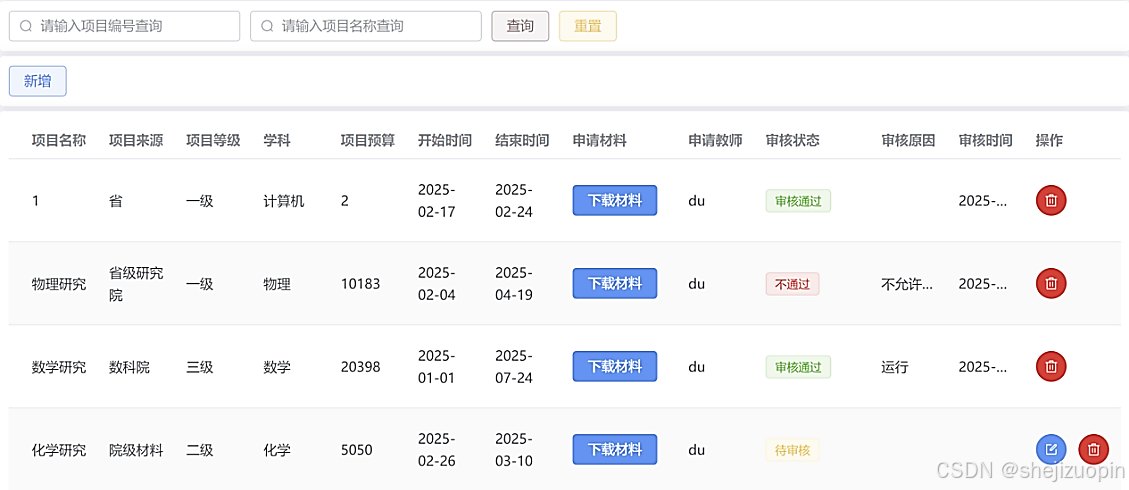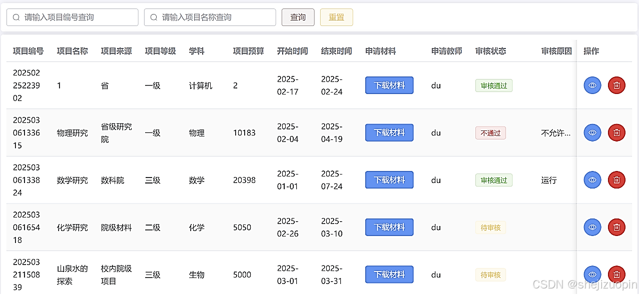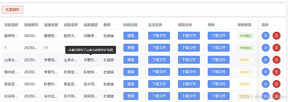 Keywords: University Research Management; Spring Boot; Vue 3; MySQL