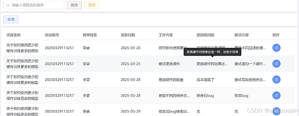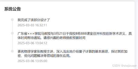 科研水平是高校的软实力的重要体现部分,随着高校科研项目的增多,传统的高校科研管理中存在的信息孤岛、流程繁琐、数据统计低效等弊端。为了提高科研管理的效率,本项目开发一个基于Spring Boot的高校科研管理系统,采用前后端分离架构,前端基于Vue 3结合Element-Plus、Vue-Router和Axios进行开发,后端以Spring Boot为核心框架,结合MyBatis作为持久层框架,Hutool作为工具类库,数据库采用MySQL作为数据存储管理系统。本系统实现了对新增科研项目的全过程管理,反馈以及数据可视化的功能。通过本系统,可以对高校科研项目进行管理,为科研项目经费申请提供便利,使科研数据统计更为直观。此外还能查看学校发布的相关公告。