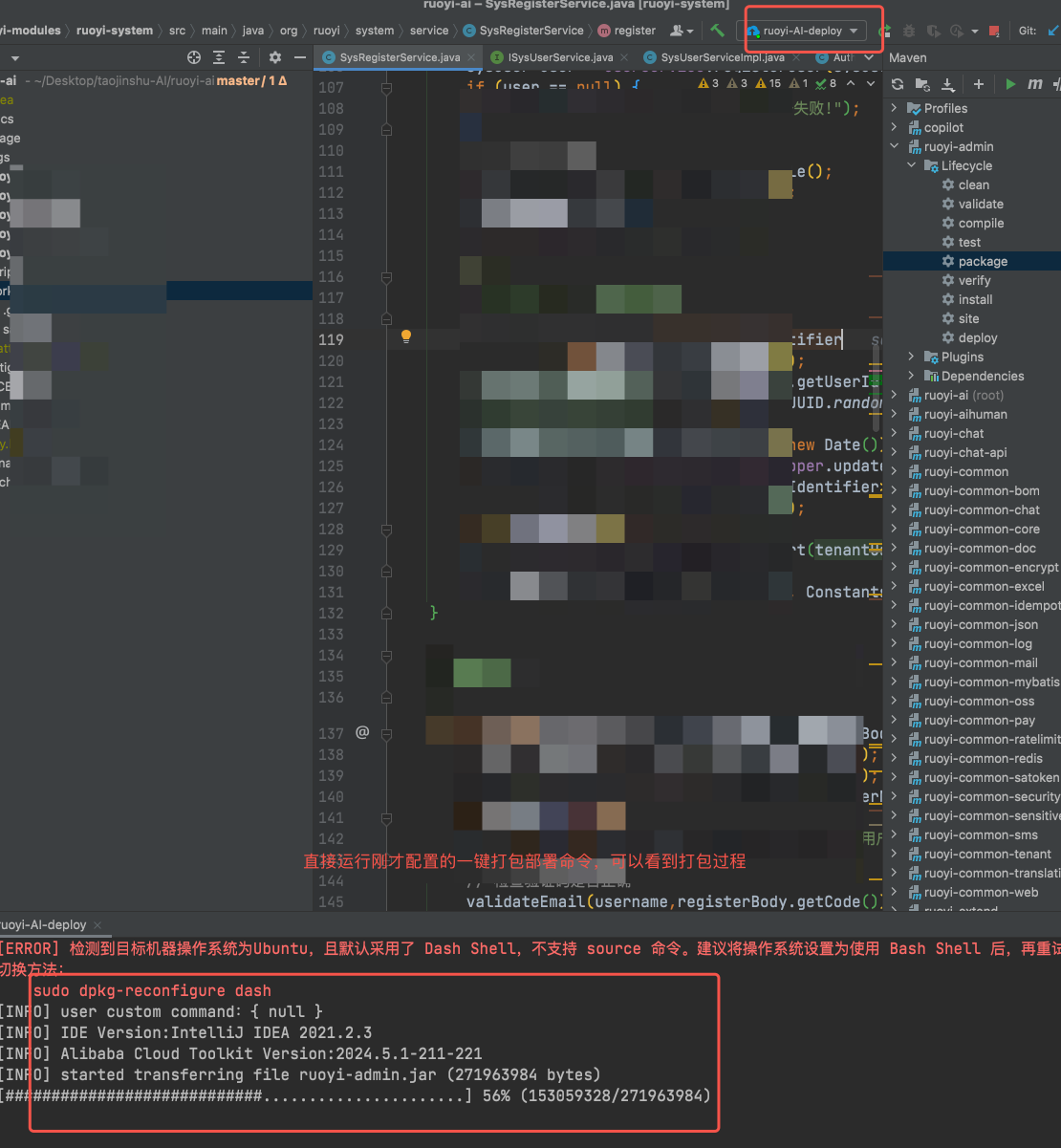 5、执行刚配置的打包和部署命令