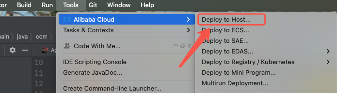 Tools-> Alibaba Cloud -> Deploy to Host