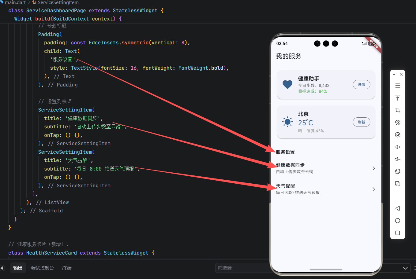 - [四、完整可运行示例(服务卡片 + 设置列表)](#四、完整可运行示例(服务卡片 + 设置列表))