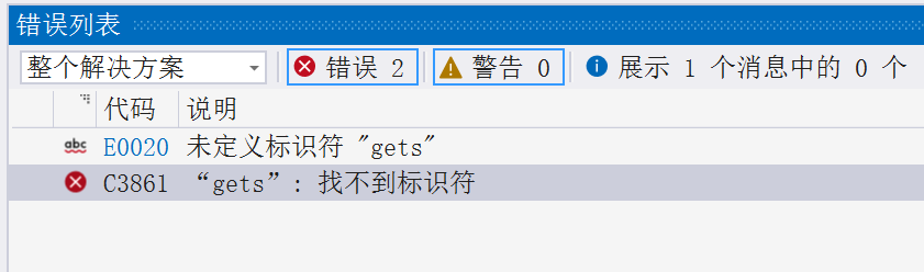 虽然在DevC++上使用gets函数没有报错,但是该函数在VS2022中会报以下错误,所以尽量减少gets函数的使用: