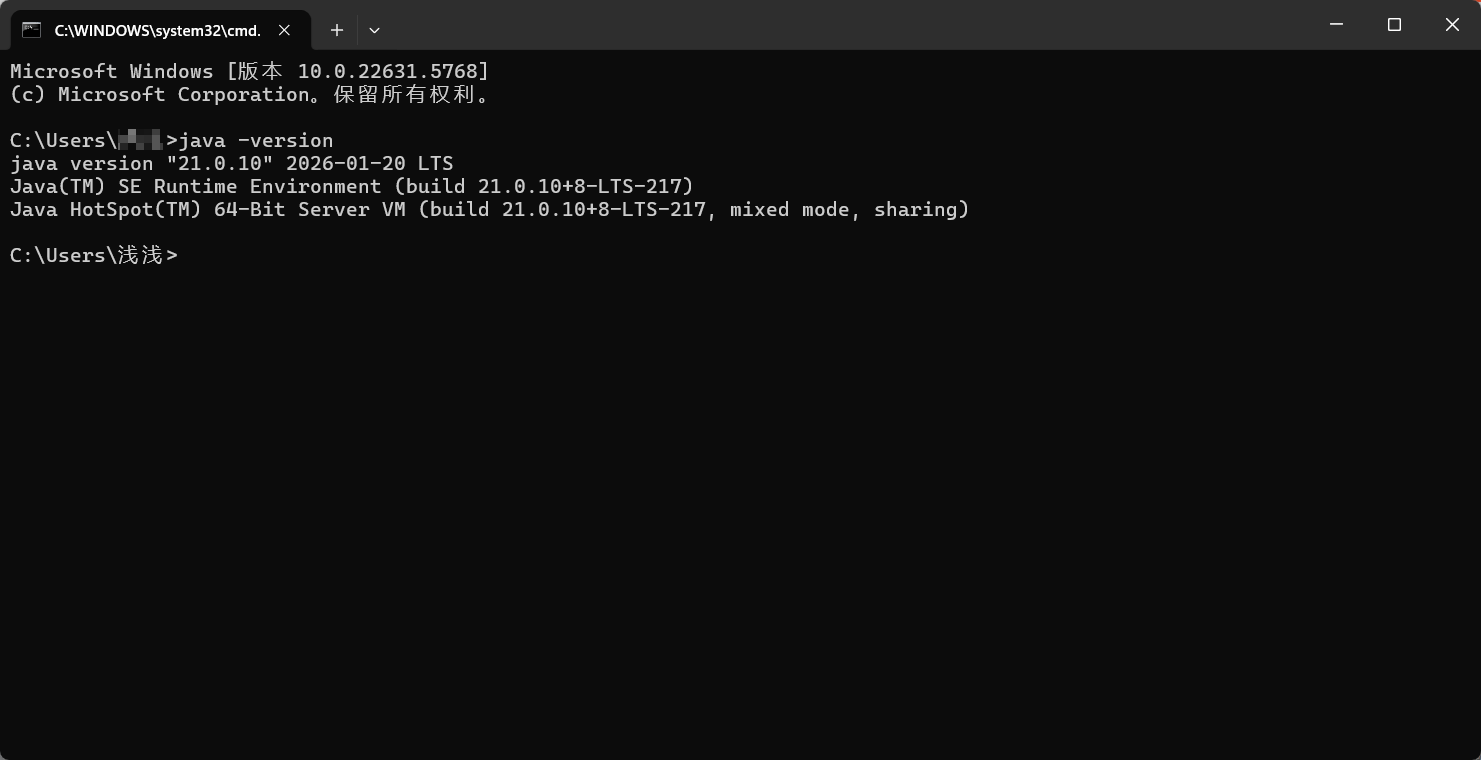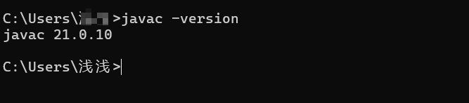 若显示 javac 21.0.x(或 javac 25.0.x),说明 JDK 安装成功!