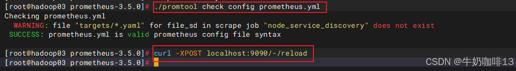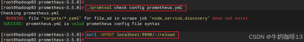 #验证prometheus.yml文件中的语法正确后热重载让配置生效