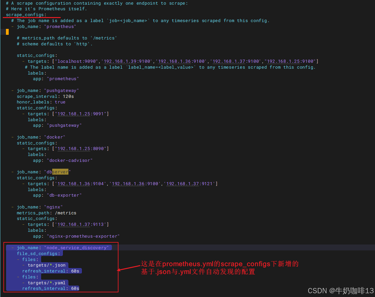 #2-【prometheus.yml】文件末尾的【scrape_configs:】下新增基于文件发现的配置