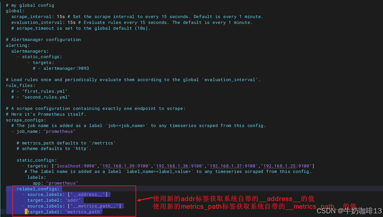 《1》对于小型的系统环境来说,通过static_configs静态指定各Target便能解决问题,这就是最简单的静态手动配置。