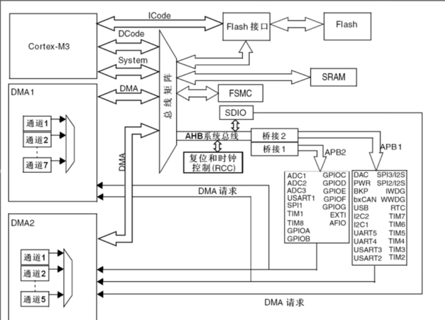 主时钟通过 PLL 倍频、分频器分频后,分配给不同模块 CPU 核心时钟 AHBAPB 外设专用时钟