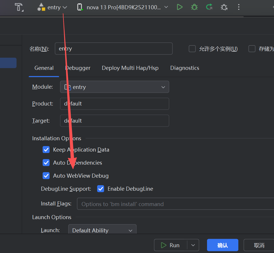 PS: 在运行/调试配置页,打开Auto WebView Debug