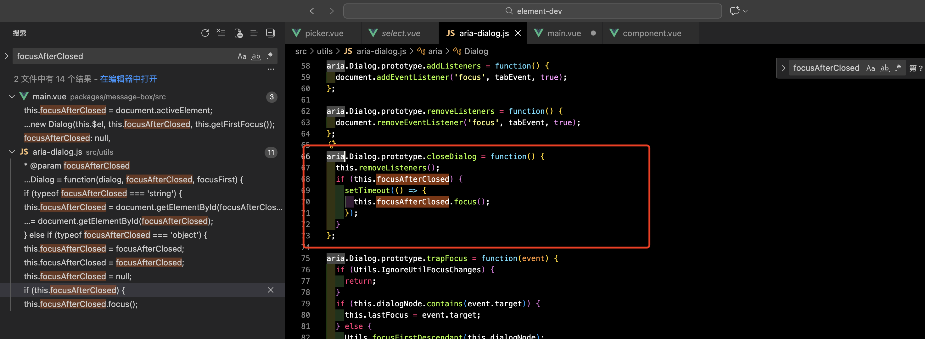 Element UI 的 $confirm 等弹窗组件在设计时,为了保证无障碍体验,会在弹窗关闭后自动恢复焦点到触发它的元素: