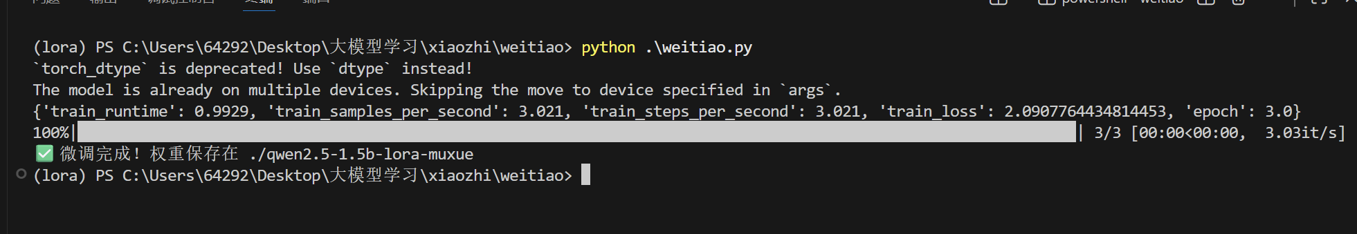 print("✅ 微调完成!权重保存在 ./qwen2.5-1.5b-lora-muxue")