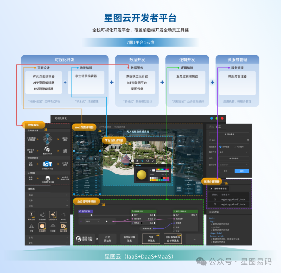 传统的低代码往往"重前轻后",导致复杂业务难以落地。新一代低代码开发平台如星图云开发者平台,实现了实现从数据接入、算法调用、应用协同开发到应用发布部署的云上一站闭环,避免了工具碎片化带来的协作损耗。