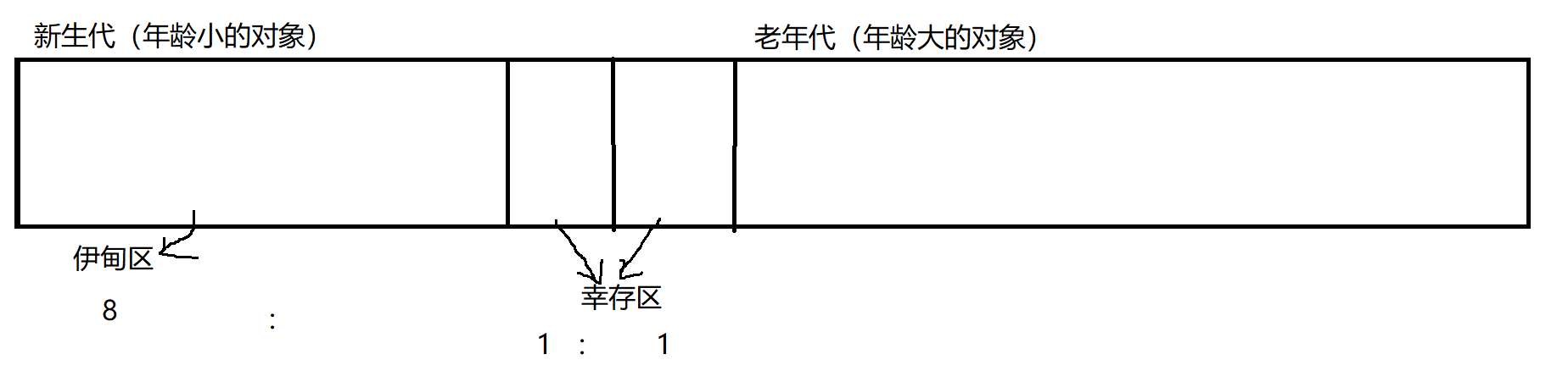 伊甸区和幸存区的内存占比为:8 : 1 : 1