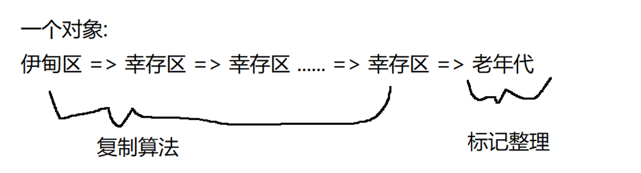 新对象,撑过第一轮 GC 之后,就会使用 复制算法,复制到 幸存区。(伊甸区 => 幸存区:复制算法)