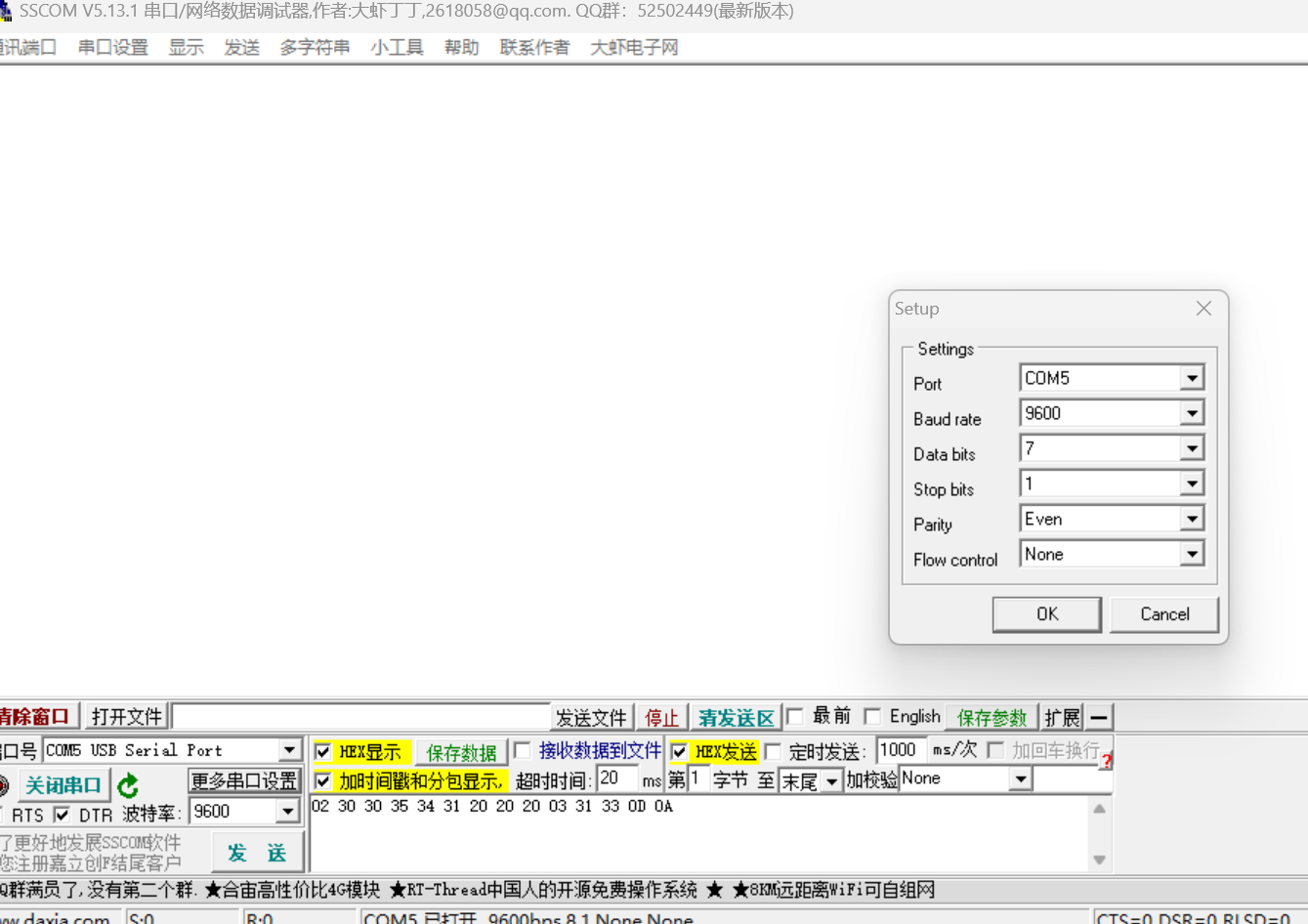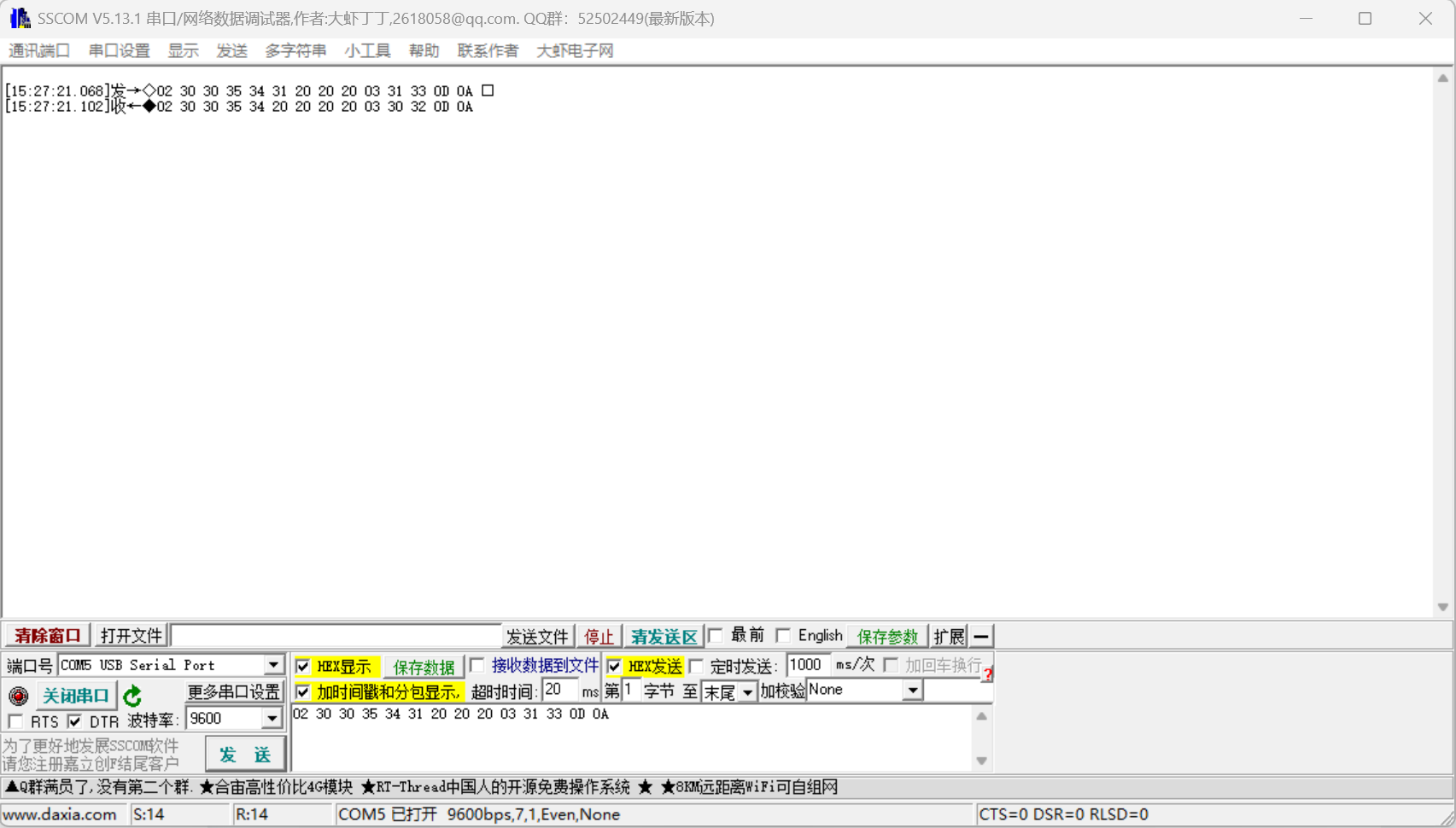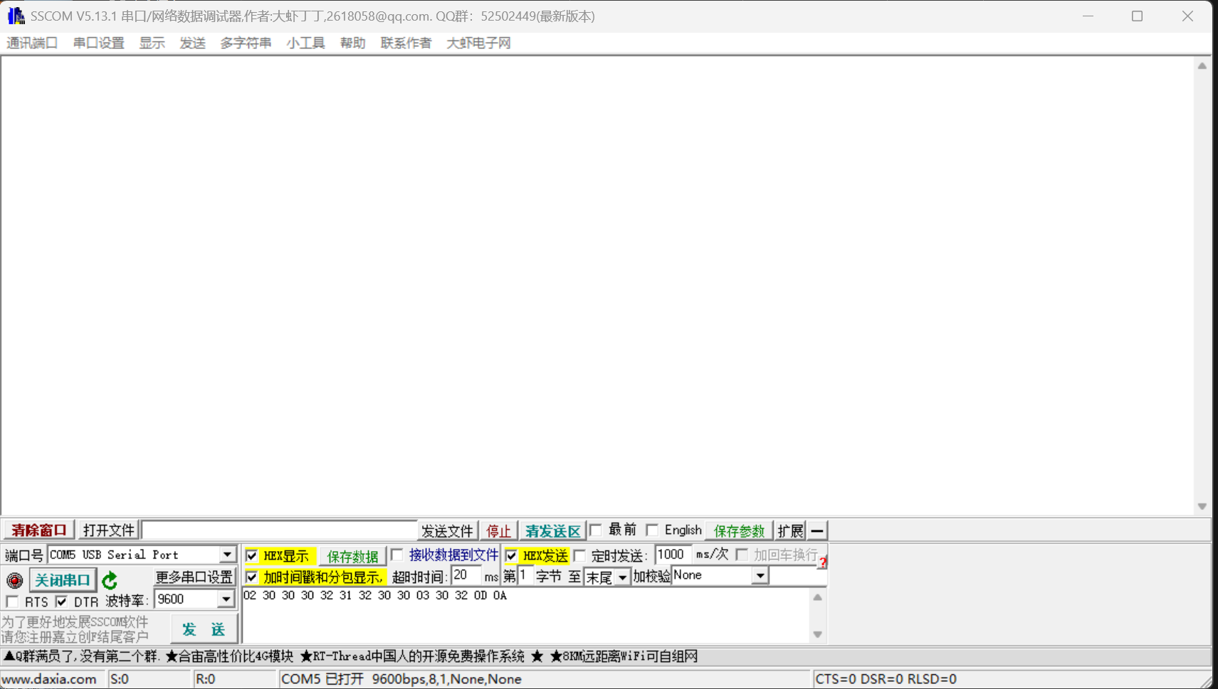步骤二: 获取报文,使用SSCOM进行测试