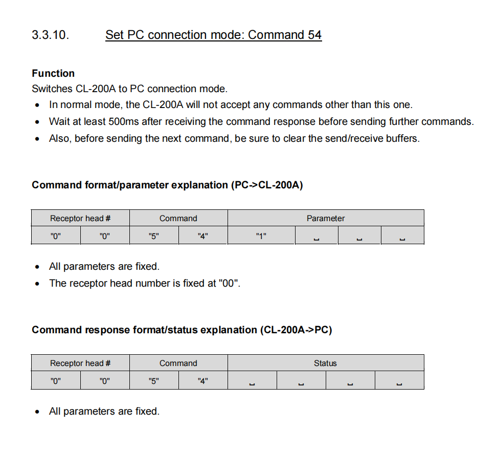 - 设置PC连接模式(命令54)