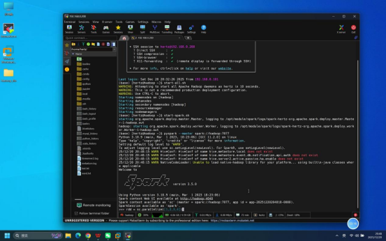 操作说明:在登录成功的Mobaxterm终端中,按依赖顺序启动相关服务(先启动基础依赖服务,再启动Spark服务)。