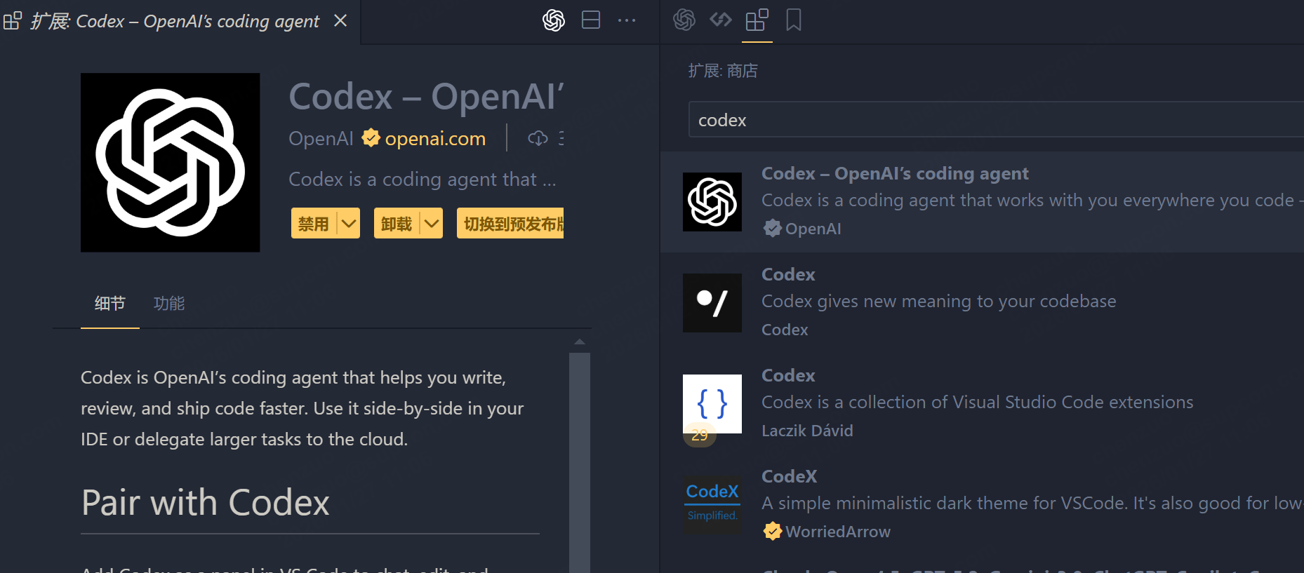 1、插件中安装 codex