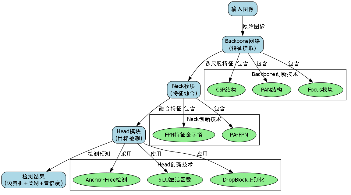 - 后处理模块:对检测结果进行优化和可视化
