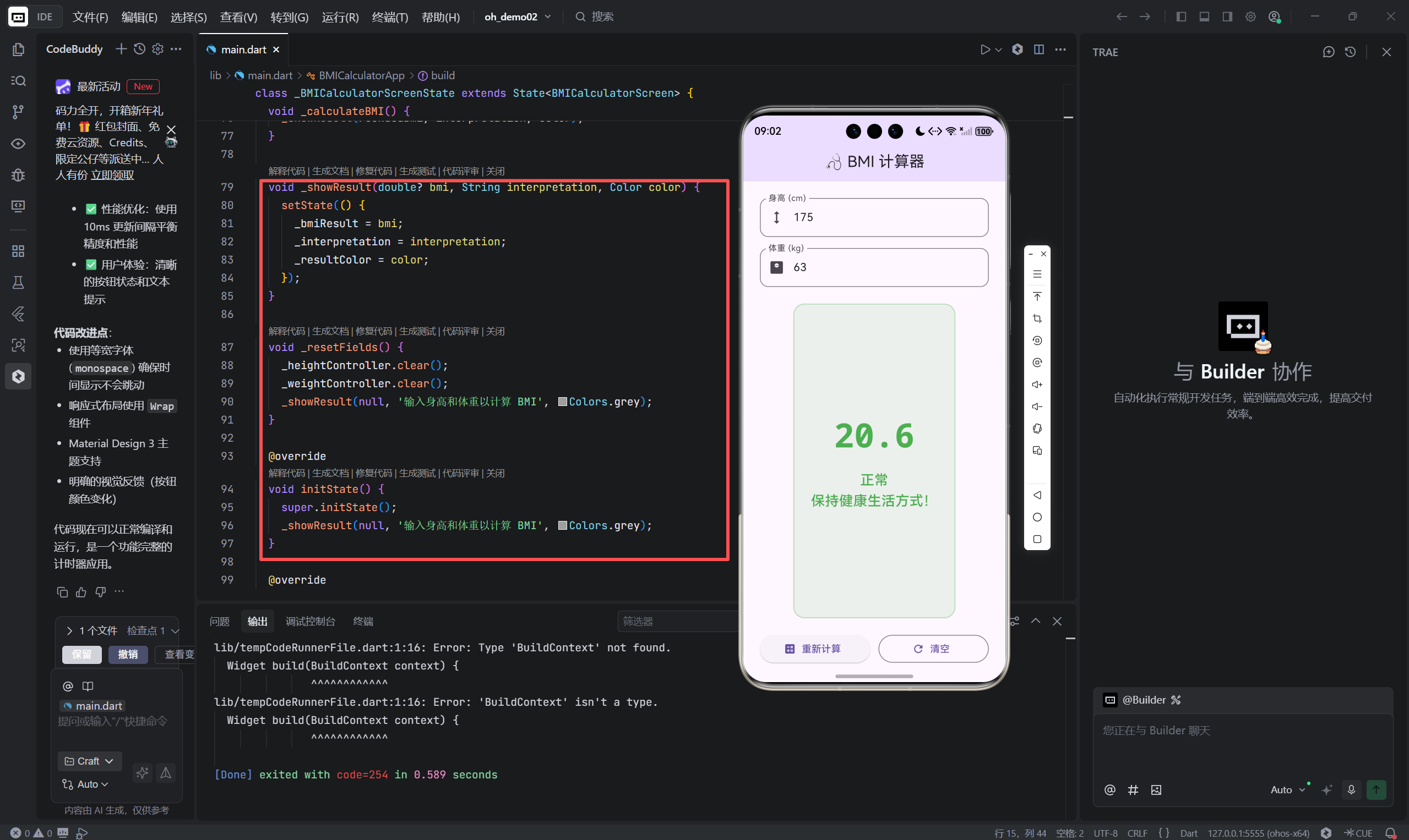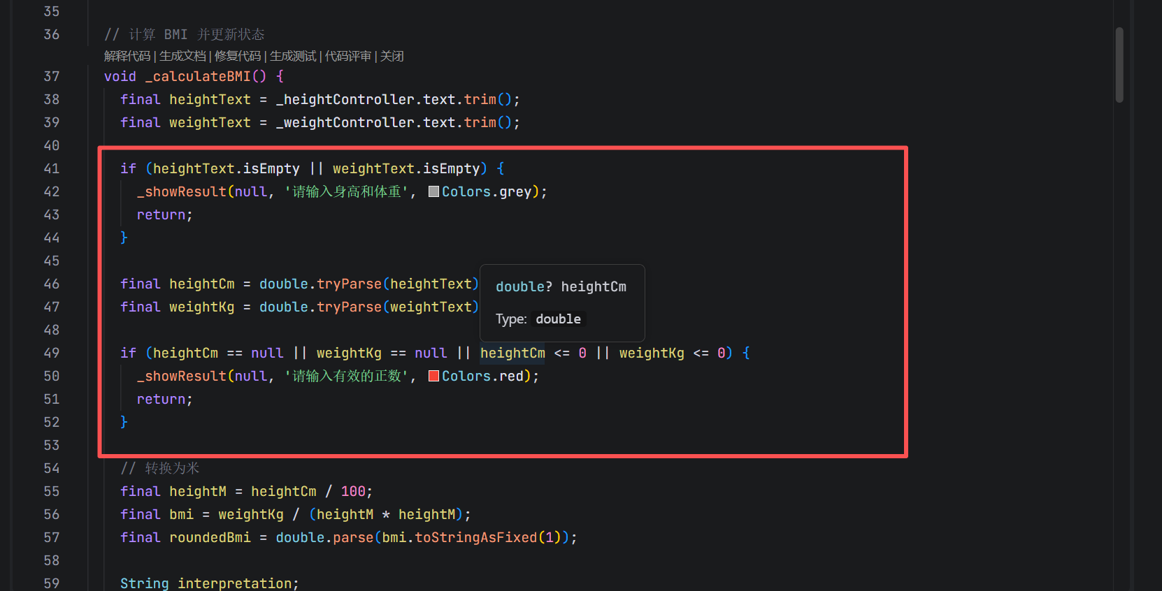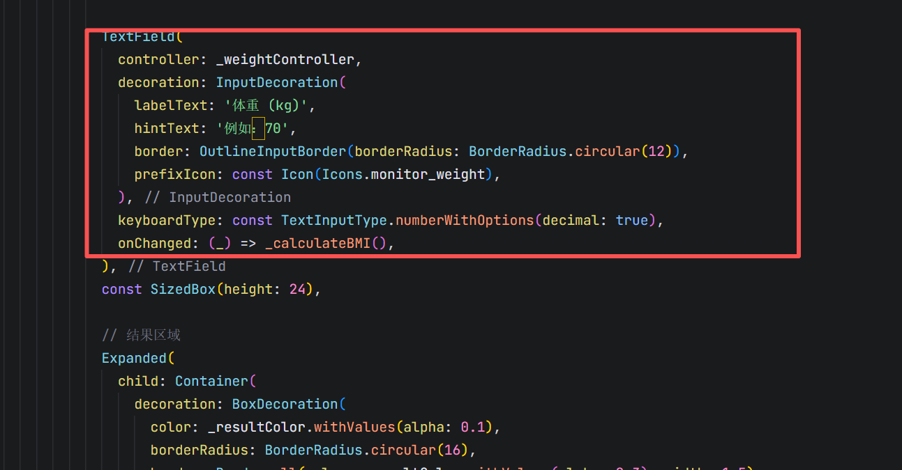 每次用户输入字符,立即调用 _calculateBMI()。这种方式提供 即时反馈,符合现代 UX 期望。