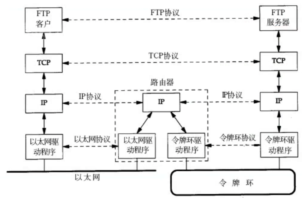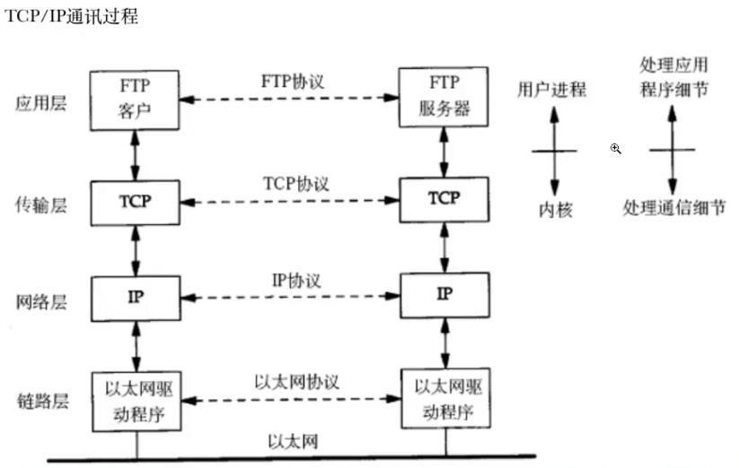 两个主机之间的通信实际上两个协议栈之间的通信。