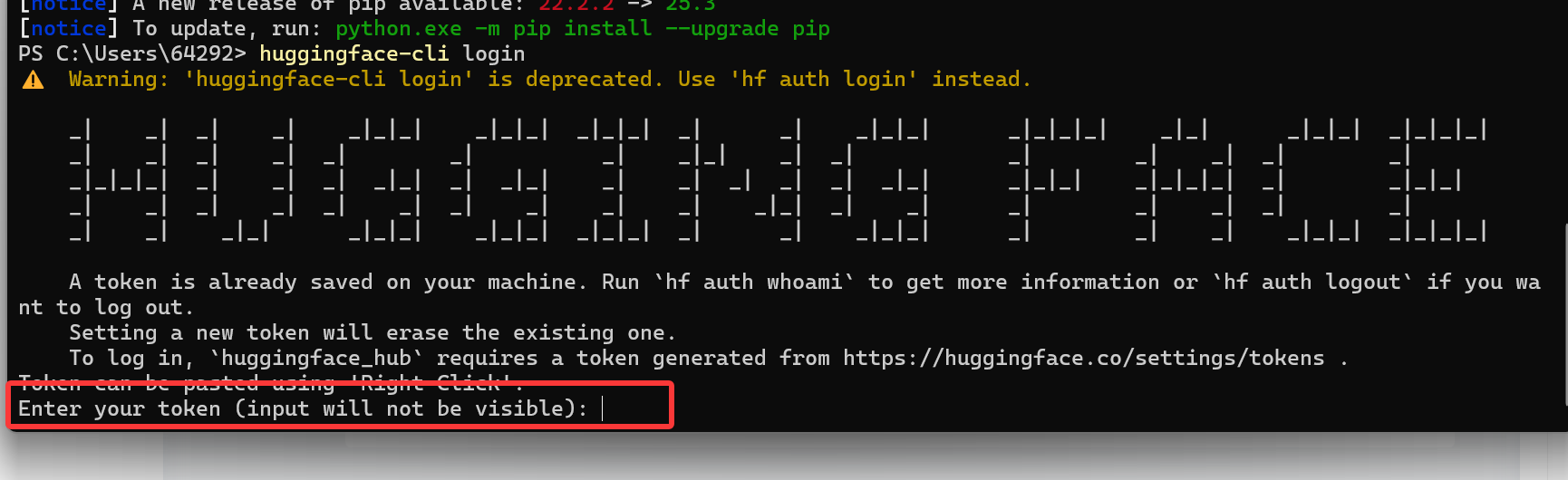 bashhuggingface-cli login之后把上面的第一步的token码填上去