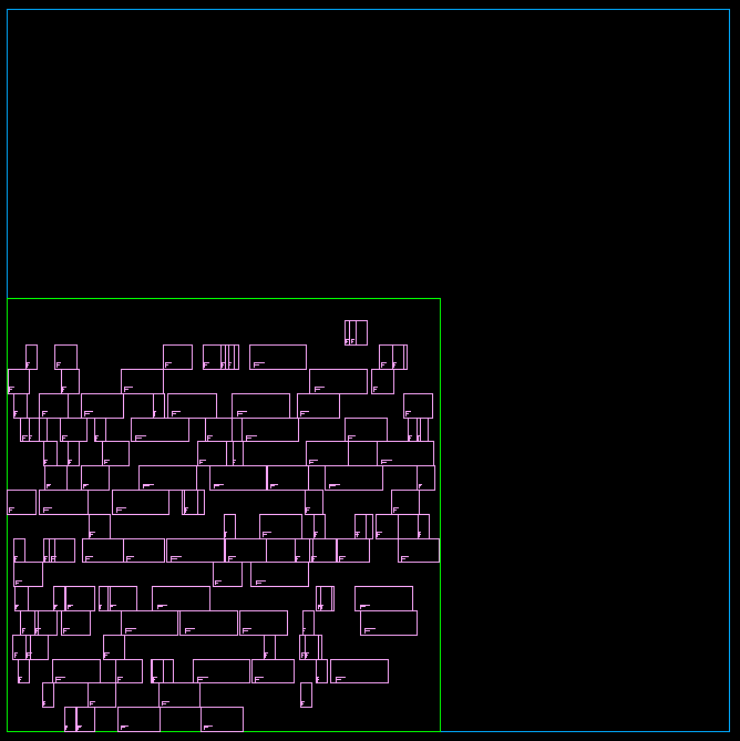 此时综合结果的的版图如图6所示,其中绿色线表示的是核心(Core)区域,蓝色线表示的是芯片(Die)区域。
