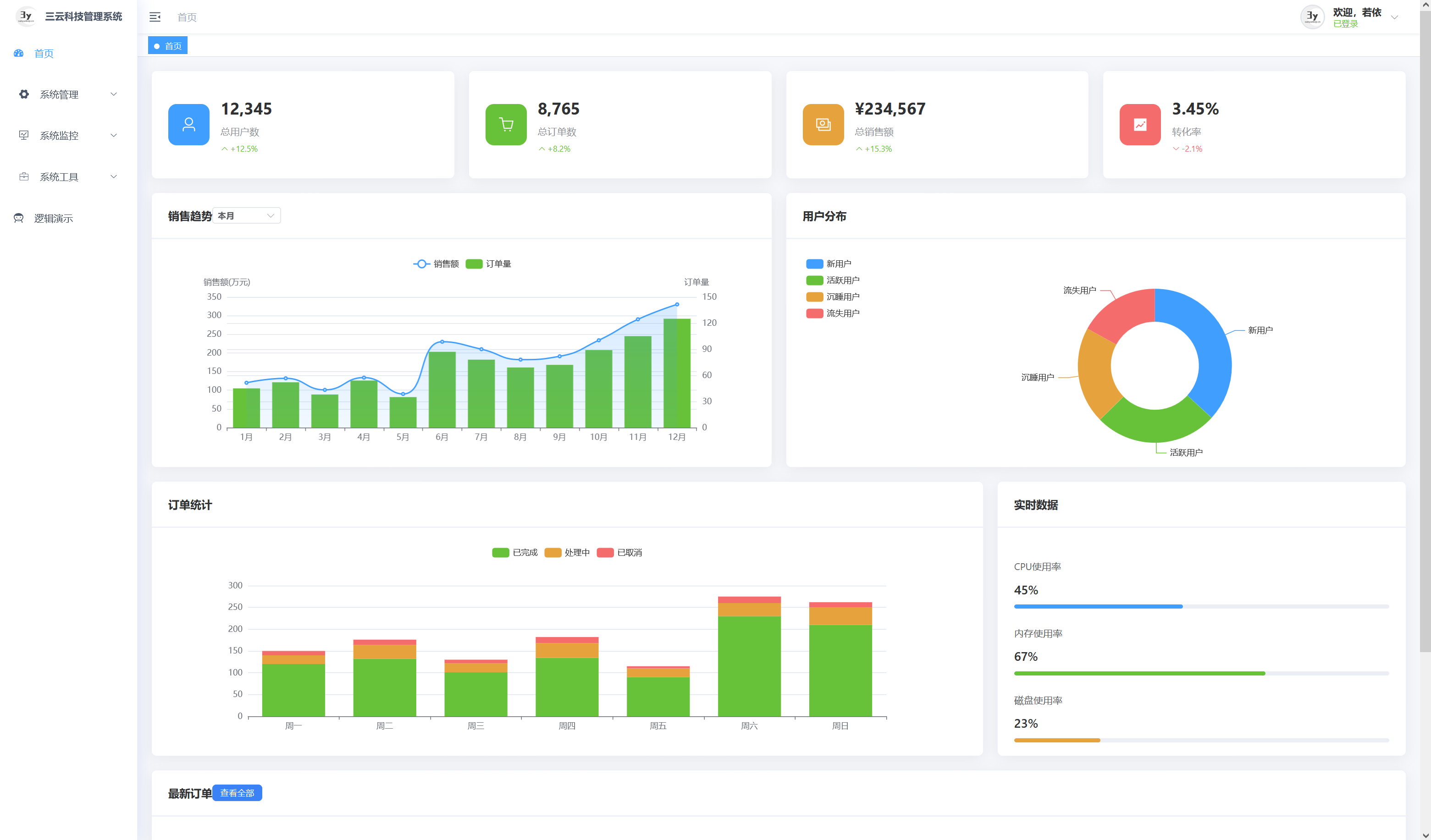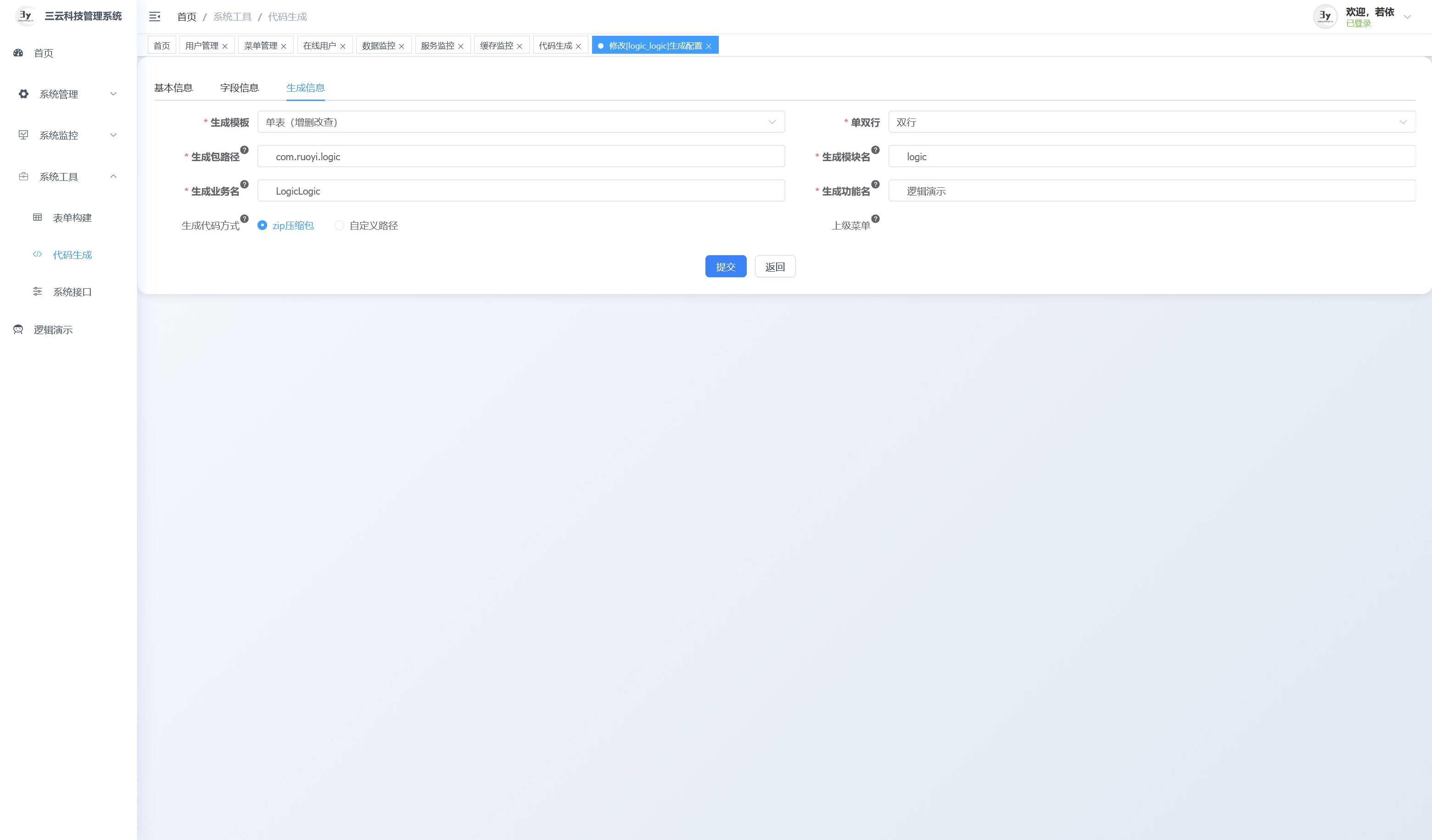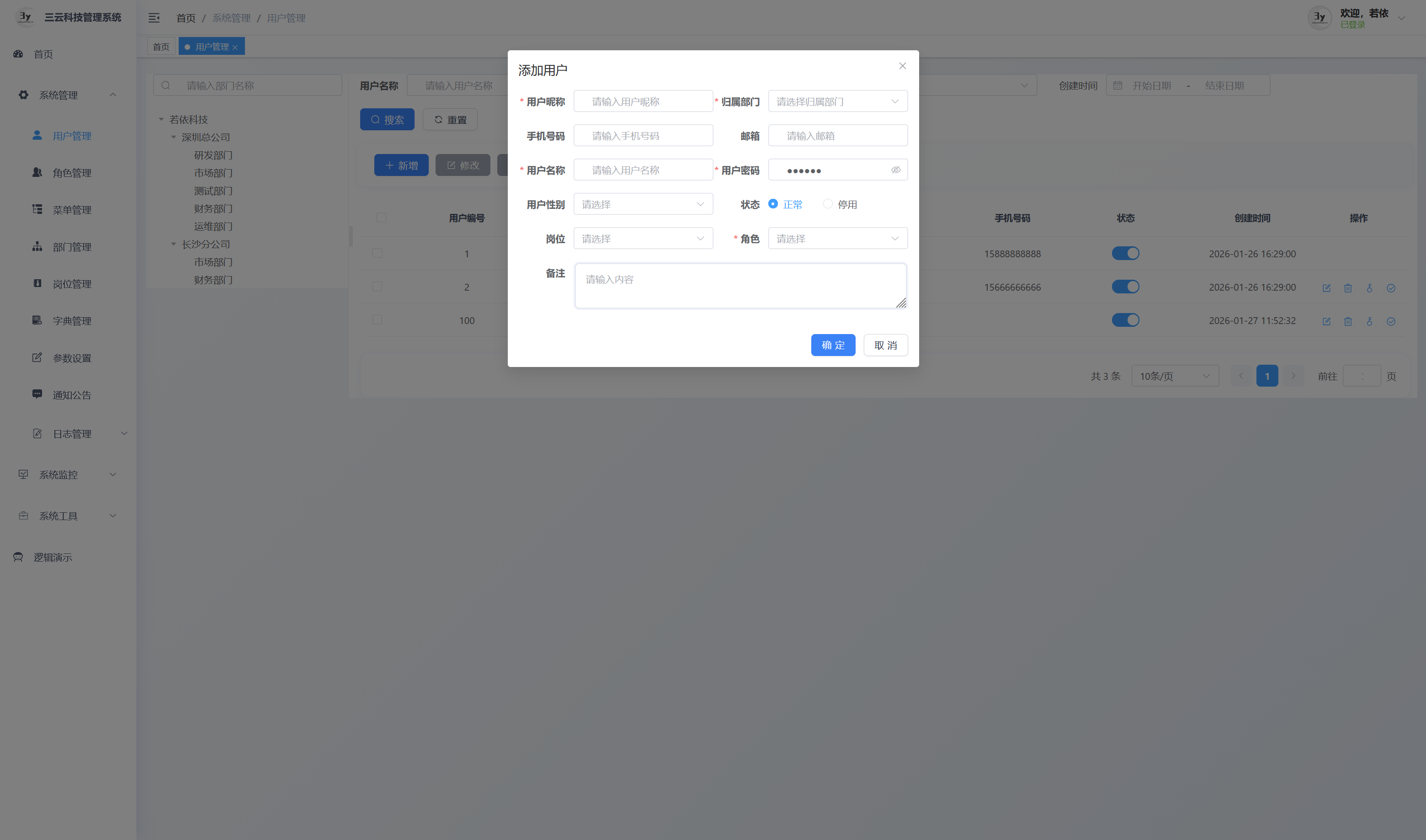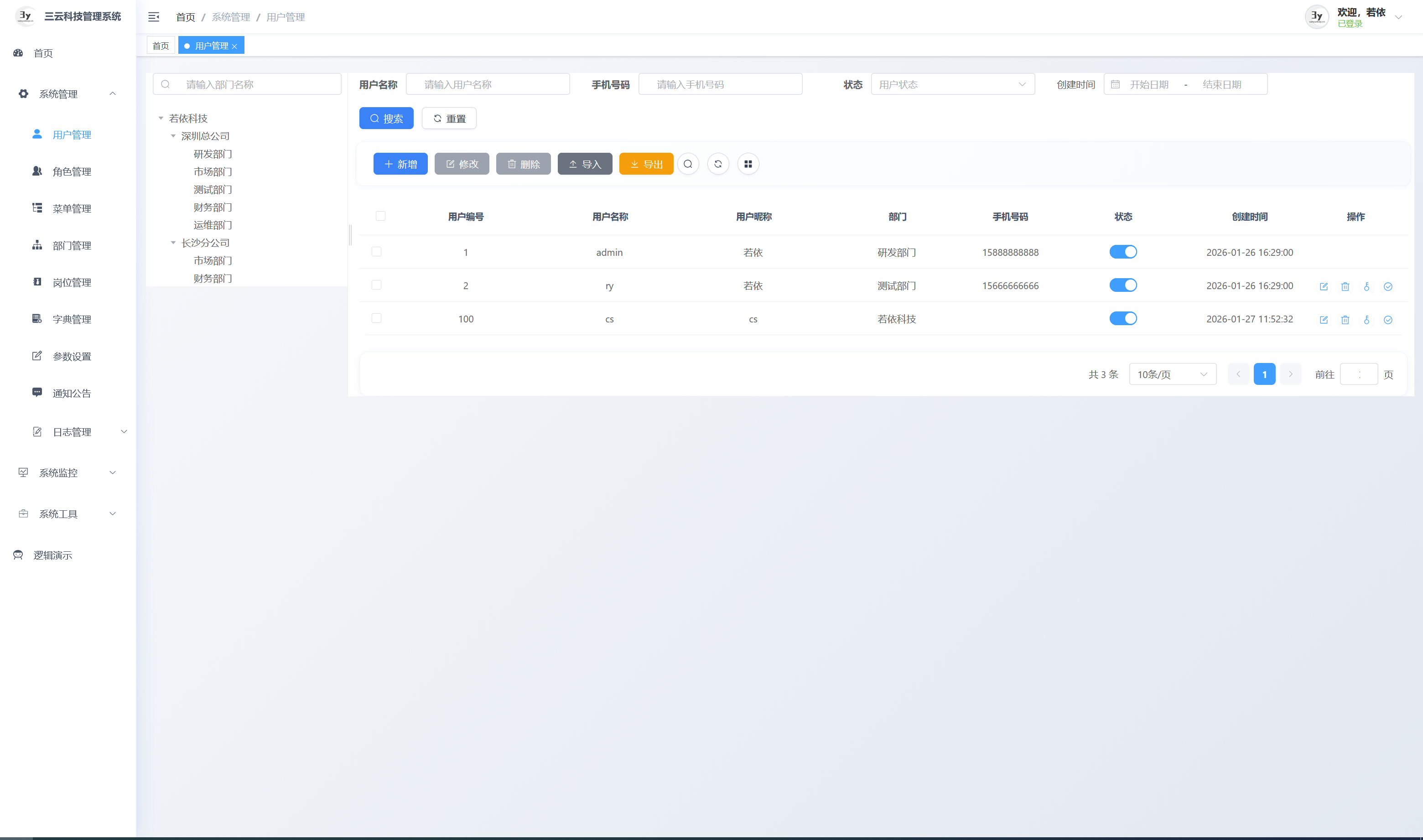 基于若依框架二次开发的企业级后台管理系统。