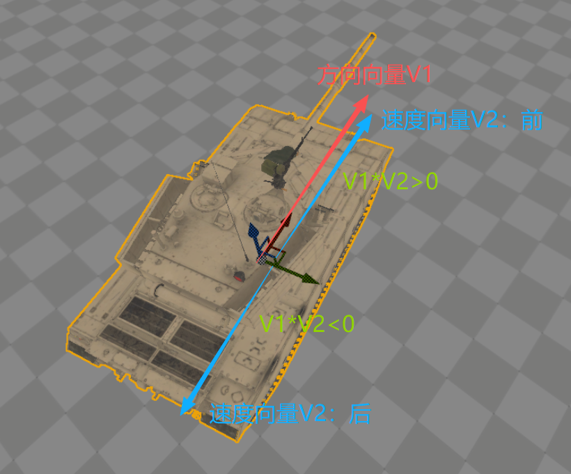 2.使用点积运算,判断物体是在前移还是后移,得出速度正负值