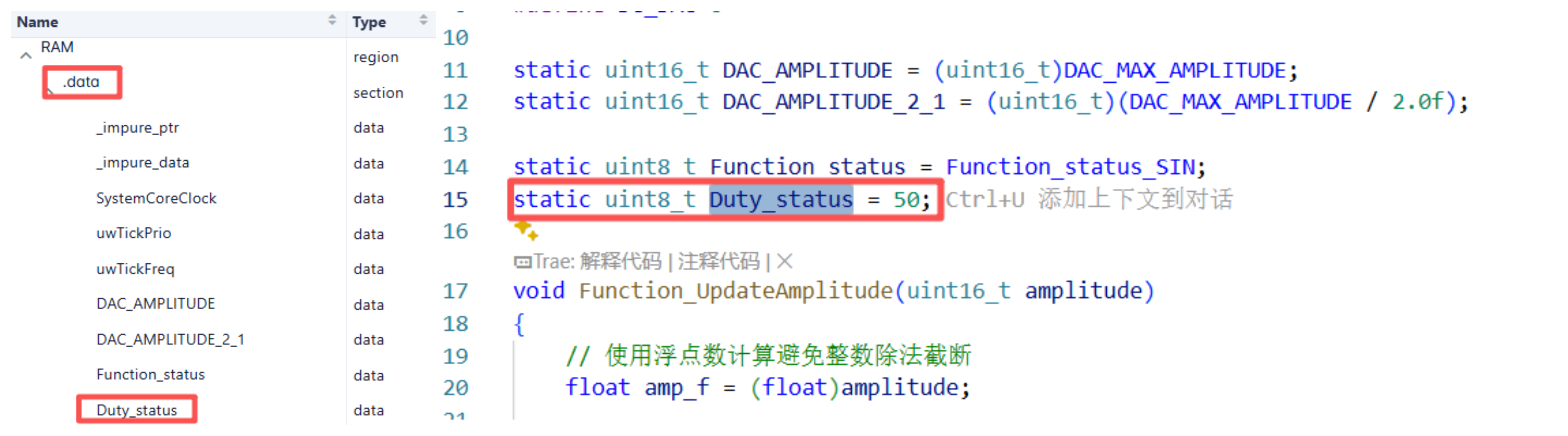 data段数据示例(static uint8_t 编译后被归类到RAM data段)