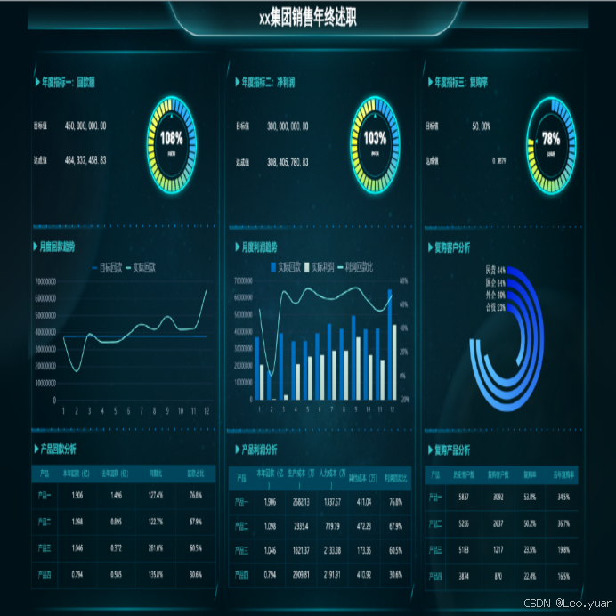比如下面这几份数据看板,一眼望去,各种核心指标、趋势一目了然,就比几页的文字汇报和表格要清楚很多。
