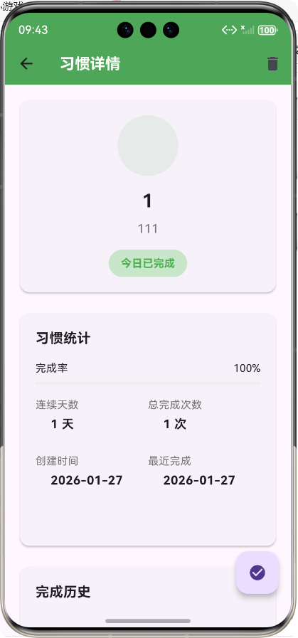 - ✅ 习惯追踪:标记习惯完成状态,记录完成历史