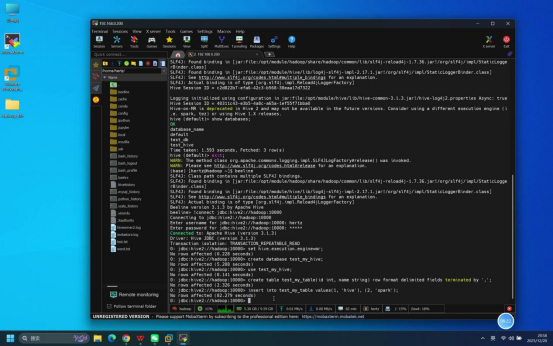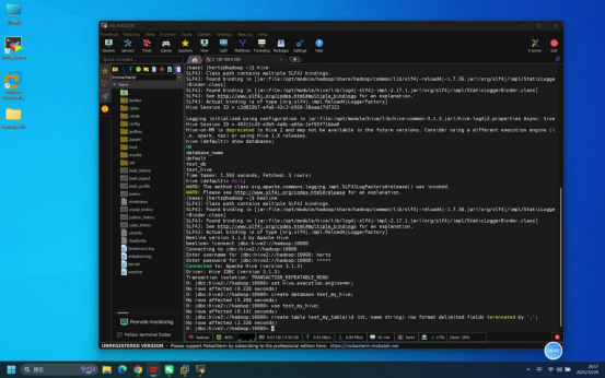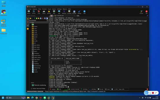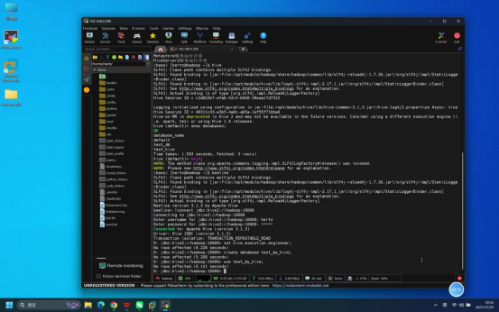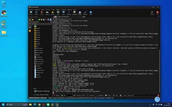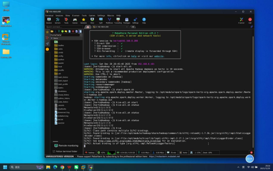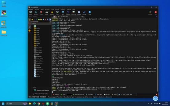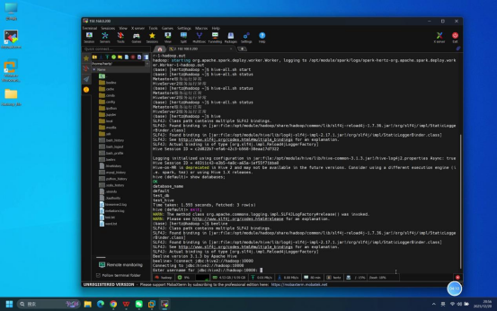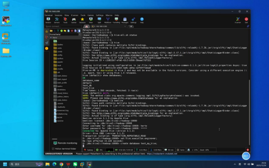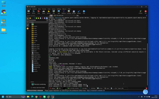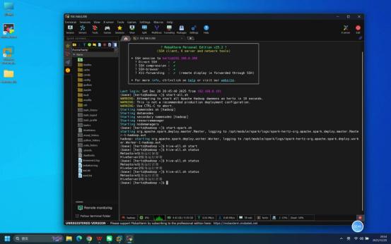 操作说明:在登录成功的Mobaxterm终端中,按依赖顺序启动相关服务(先启动基础依赖服务,再启动Hive服务)。