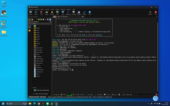 操作说明:打开本地Mobaxterm工具,按照伪分布式部署教程中的详细步骤建立与虚拟机的远程连接。
