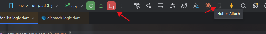 2.进入到Flutter页面后,直接点击安卓工程右边出现flutter attach
