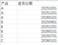 假设我们筛选了进货日期2025-7-1,2025-9-1和2025-12-1,表格第三列就会显示当前行的上一次选中的进货日期: