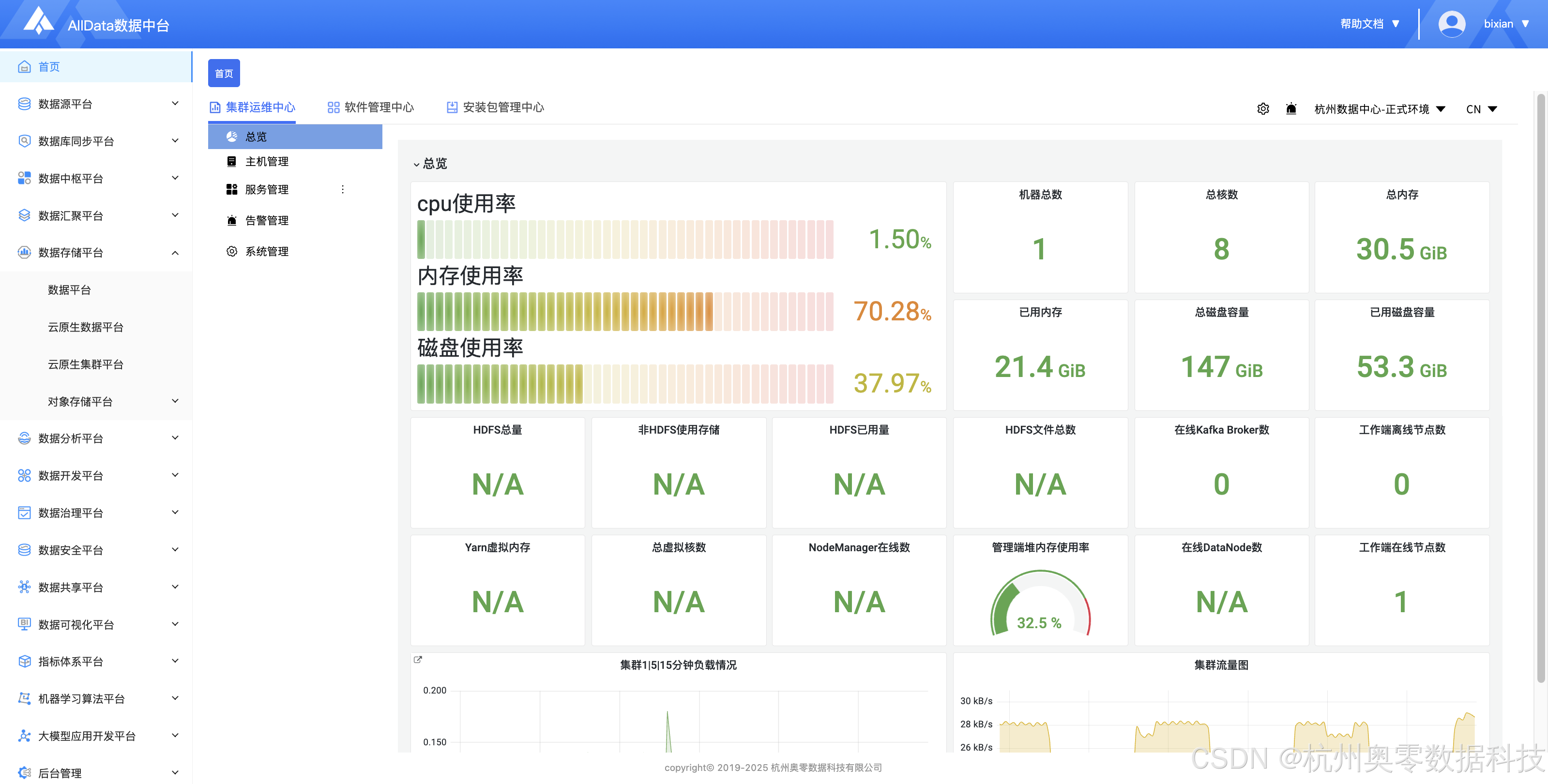 AlIData数据中台集成了开源项目DataSophon作为数据平台,打破了传统大数据平台的运维壁垒,哪怕您不懂复杂的技术配置,只需简单操作,就能完成大数据平台的部署、监控与运维,让大数据管理从 "技术专属" 变成 "全员可控"。