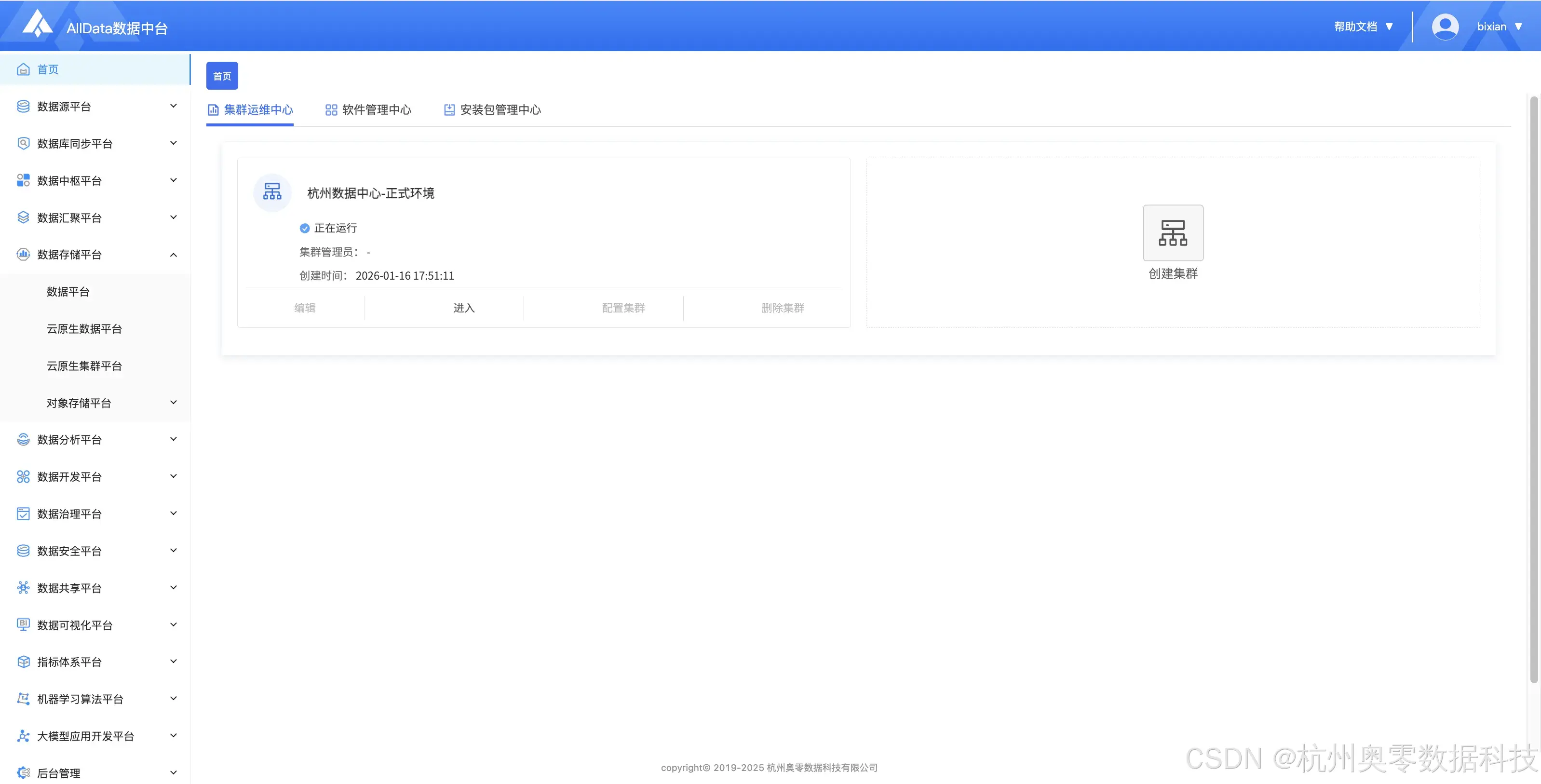 作为AllData数据中台的大数据管理中枢,数据平台以 "三大核心引擎 + 全链路运维" 为架构。