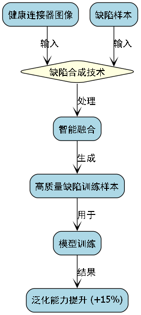 特别值得一提的是,我们引入了缺陷合成技术 ,通过将缺陷样本与健康连接器图像进行智能融合,生成大量高质量的缺陷训练样本。这一技术不仅解决了某些罕见缺陷样本不足的问题,还创造了许多现实中可能遇到但难以采集的缺陷组合情况。实验证明,经过缺陷合成技术扩充的数据集使模型的泛化能力提高了约15%。