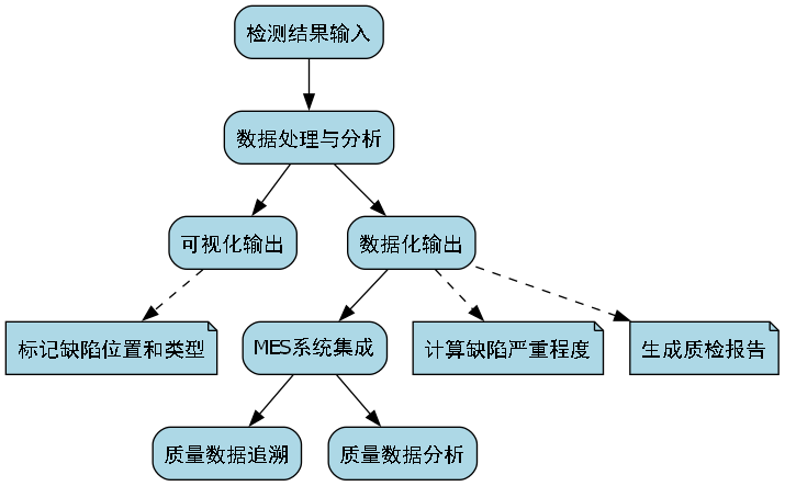 结果输出模块将检测结果以可视化和数据化的方式呈现。系统不仅能标记出缺陷的位置和类型,还能计算缺陷的严重程度,并生成质检报告。这些信息可以直接集成到工厂的MES系统中,实现质量数据的追溯和分析。