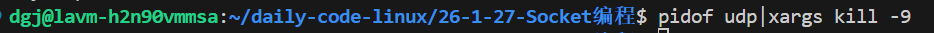 如果我们要杀掉叫udp的进程,那么我们可以使用以上的指令,将其pid获取并使用 kill -9 来杀掉