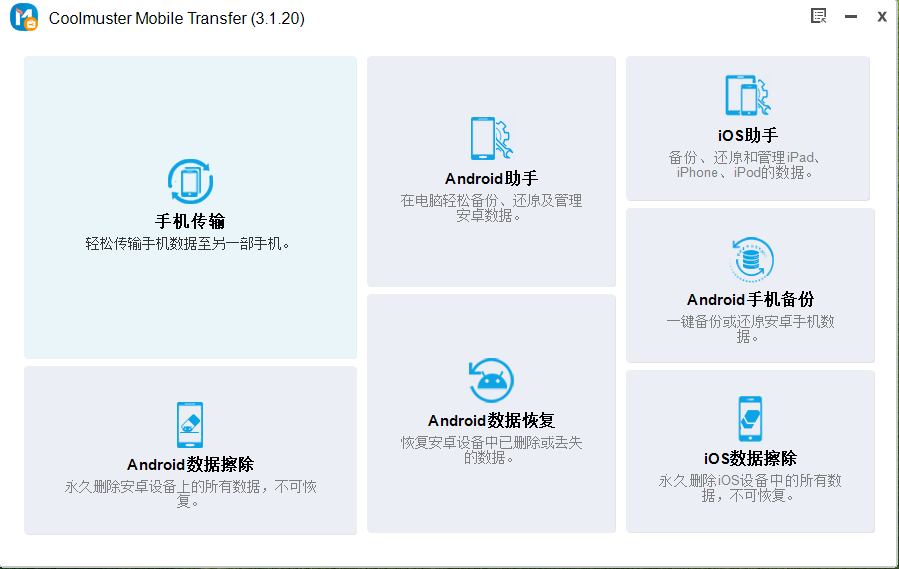 一键式数据传输,可在两台设备之间进行。